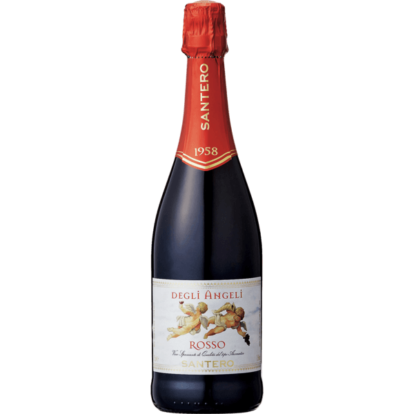 天使のラベルが目を引く、見た目も華やかな赤スパークリングワインです。